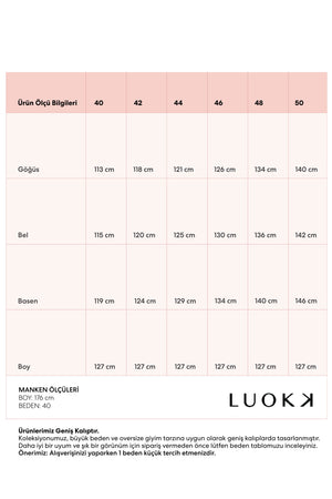 | Ürün Ölçü Bilgileri | 40 | 42 | 44 | 46 | 48 | 50 |