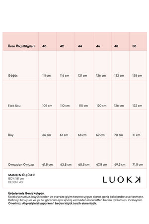 | Ürün Ölçü Bilgileri | 40 | 42 | 44 | 46 | 48 | 50 |