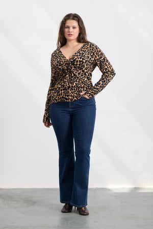 TORY V Yaka Büyük Beden Leopar Bluz Leopar