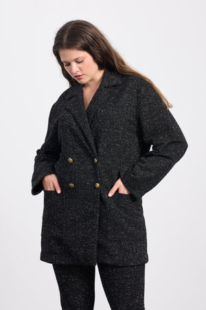 TRACEY Büyük Beden Siyah Kruvaze Tüvit Ceket Siyah