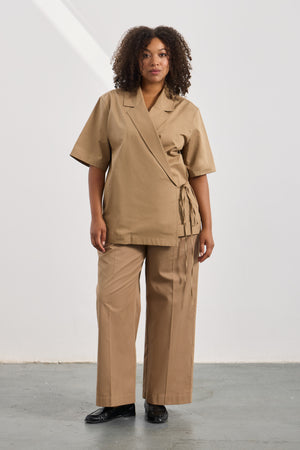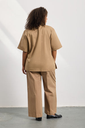 VARPER Bağlamalı Kısa Kollu Gömlek Camel