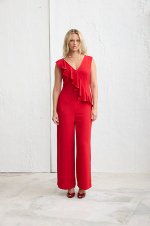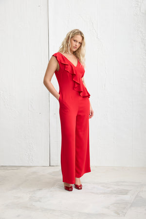 VISTI Fırfırlı Kalın Askılı Tulum Kırmızı